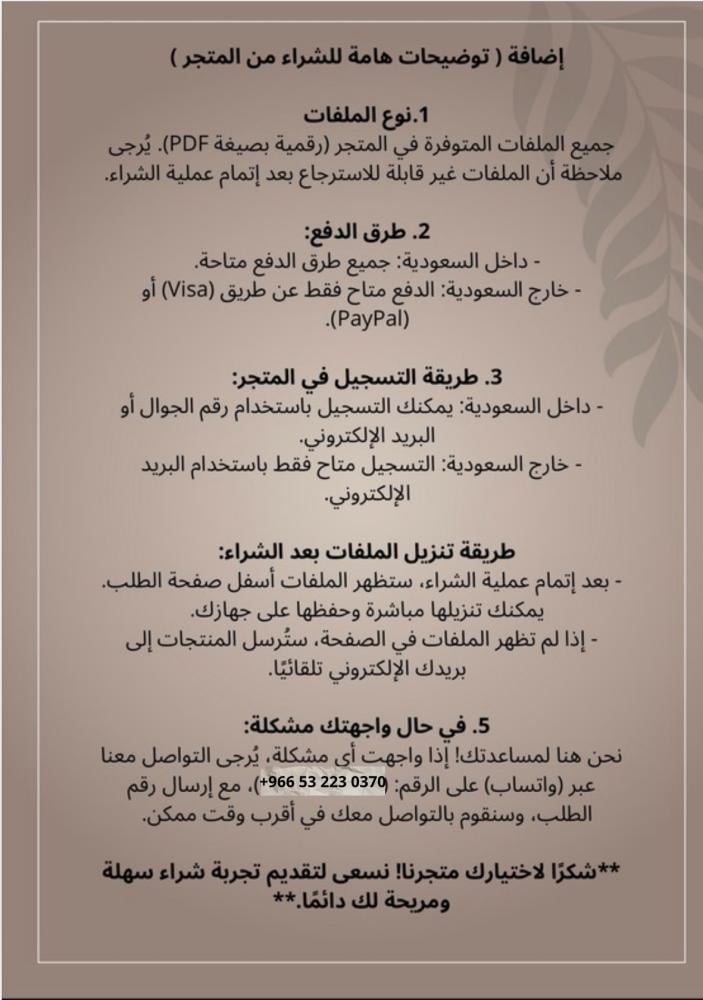 هذا الملف ليس مجرد دليل، بل هو رحلة حبّ مع نفسك. صُمّم ليكون رفيقك في اكتشاف أجمل ما فيك، ولإحياء شغفك بالحياة وصنع توازن يعكس جمالك الداخلي والخارجي.